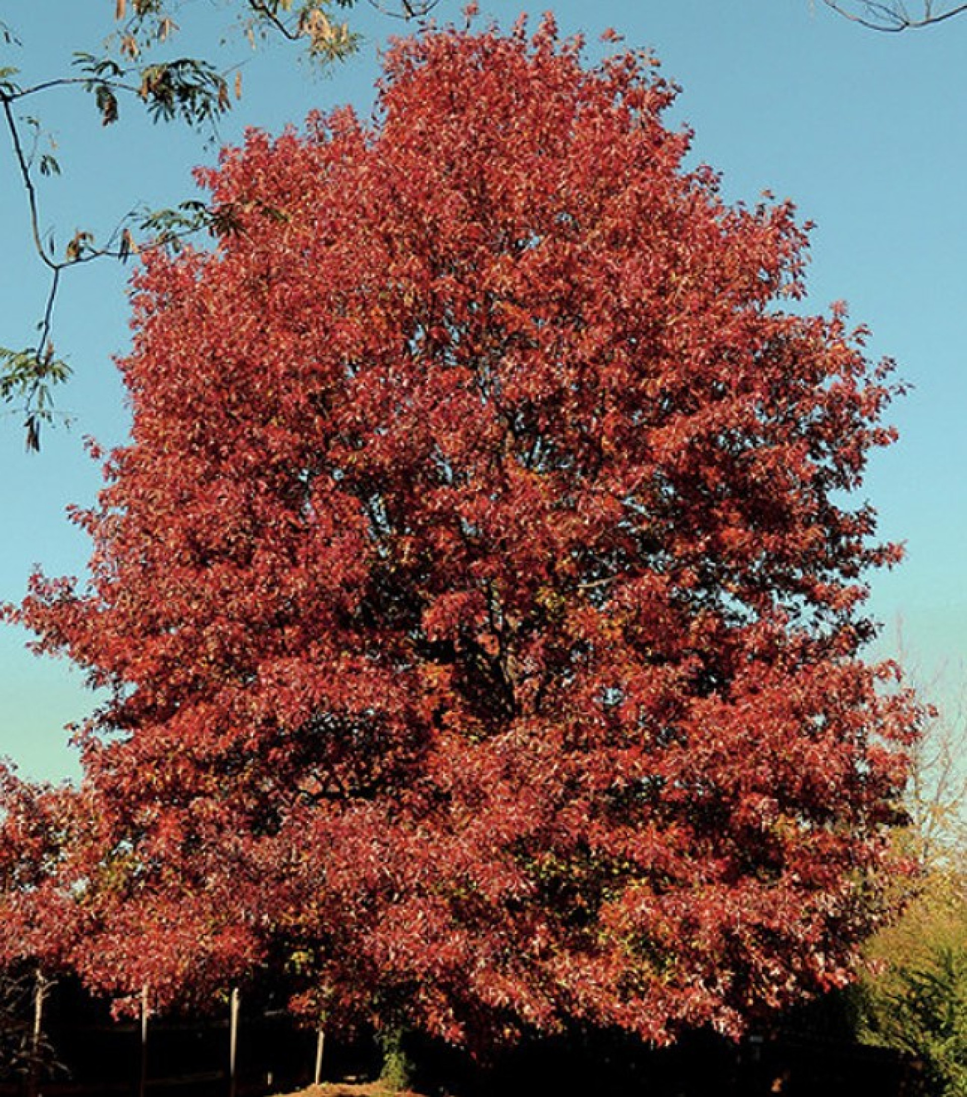 It is a native of North America, in the eastern and central United States and southeast and south-central Canada. Under optimal conditions, northern red oak is fast growing and a 10-year-old tree can be 5?6 m (16?20 ft) tall. It is a medium sized, deciduous tree with a rounded to broad-spreading crown. The leaves (they can be as long as 7.8-8.6 inches long) turn brownish-red in autumn so giving a beautiful contrast to the scenery.
