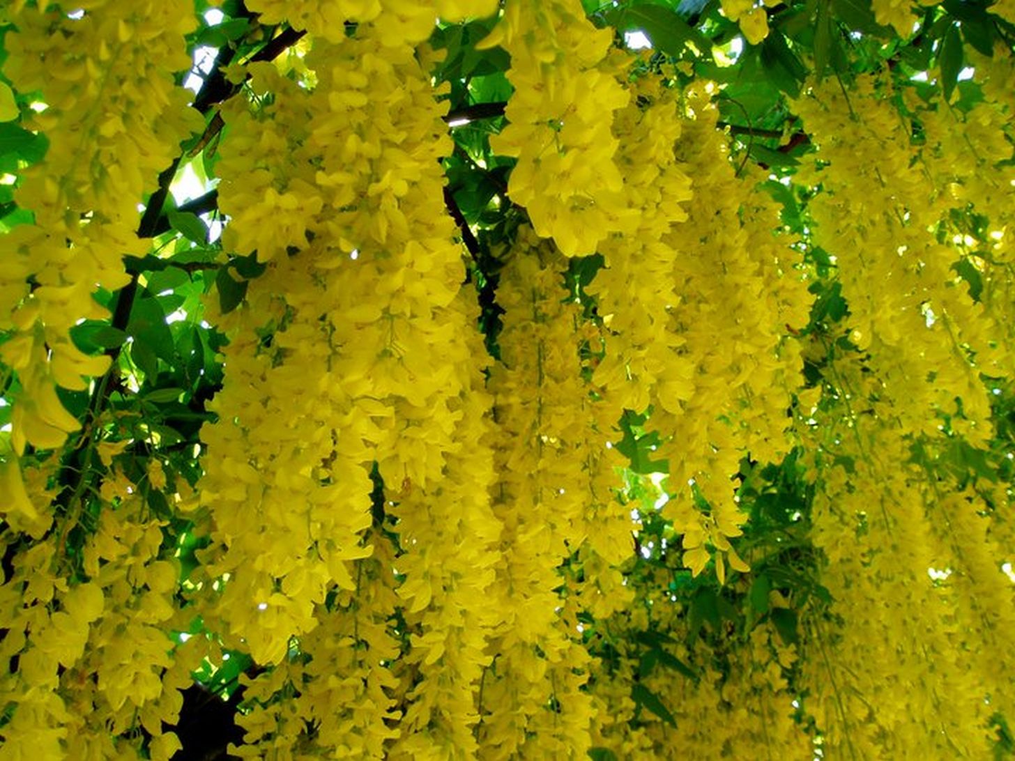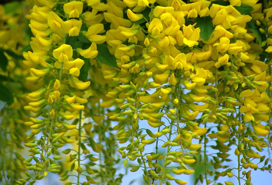 It is a 4-5-meter tall, sun-loving shrub with shiny dark green foliage, which dazzles us by a real flower orgy in spring: the bright yellow butterfly-type flowers are blooming in 30-40-cm long, huge clusters en masse for several weeks! At this time, it becomes a unique ornamental beauty in our garden!