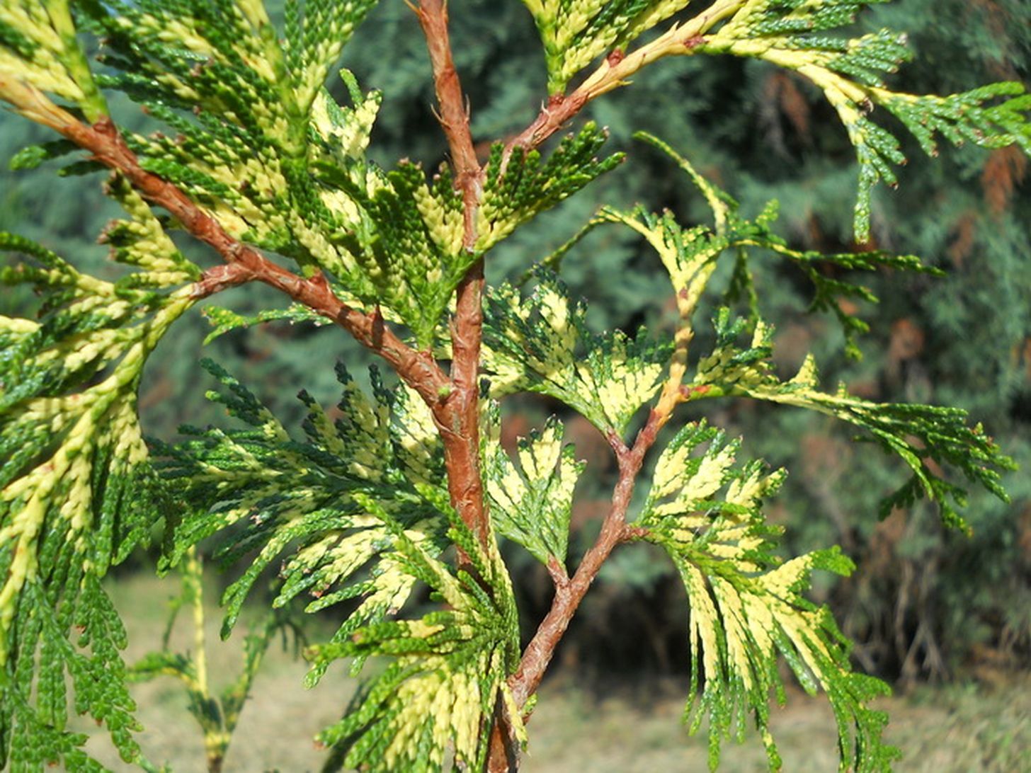 A Zebrina Extra Gold fajta lassú növekedésű, különleges színhatású, aranysárgával tarkázott lombozatú, ritka érdekesség!