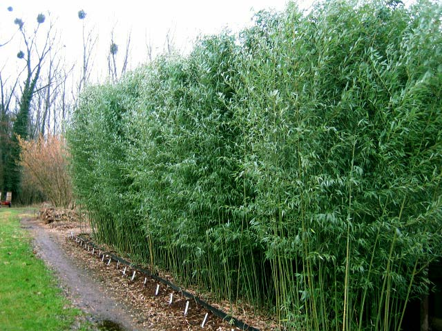 Korán kihajtó, életerős, nagy termetű bambusz, mely nálunk általában 3-4 méter magas lesz, őshazájában és optimális körülmények közt megközelítheti a 8 méteres magasságot és 4 cm-es szárátmérőt is. Fagytűrése kiváló, így hazánk legzordabb vidékein is sikerrel nevelhető! Mélyzöld, egyenes szárait, fénylő, sötétzöld lombozat koronázza. Sűrű, tömött, erőteljes növekedése miatt az egyik legkiválóbb sövénybambusz! Nyírható is! Hajtásai ehetőek, szára szerszámnyélnek és sok egyéb célra is jó alapanyag. Zóna: 5b